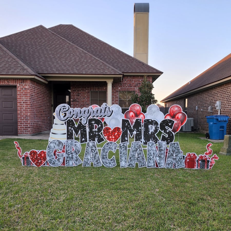 Celebrate love in a big way! 💍✨ This 3-row yard card is perfect for weddings, welcoming newlyweds home from their honeymoon, or even a bridal shower—wording can be adjusted to fit the occasion, including "Mrs." for a special bridal touch.