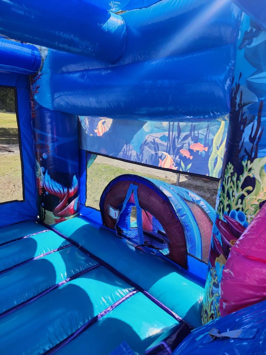 Our Mermaid Combo brings the ultimate under-the-sea adventure to your event! 🌊🐚 With its bold colors and intricate details, this combo features both a bounce house and water slide, making a splash at any celebration. It can also be used dry for endless fun, no matter the season.