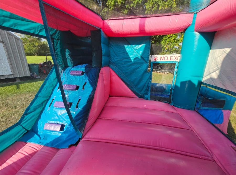Our Princess Combo is a magical bounce house with a slide that exits off the side, giving little royals the best of both worlds! 👑✨ The slide can be used wet or dry, making it a perfect fit for any celebration.