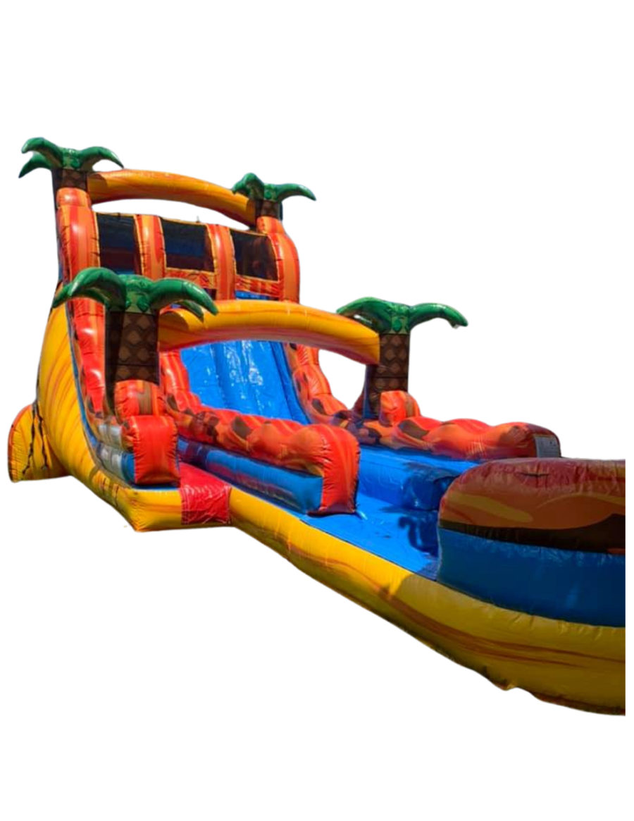 Get ready for double the fun with our 19' dual-lane hybrid slide rental! This isn’t just any slide—it’s a hybrid, meaning both lanes are extended longer than a standard slide, with the length of the slide stretching nearly 40 feet of sliding excitement!