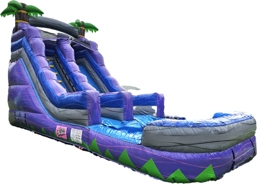 Get ready to cool off and pass a good time with our 16' Purple Crush water slide rental! With vibrant purple and blue colors, accented by lime green palm trees, this slide brings the ultimate tropical vibe to any event.